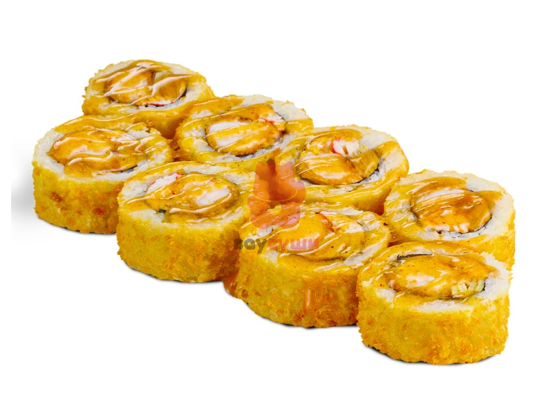 Рис, нори, соус спайси, омлет, снежный краб, креветка темпура, соус чили сладкий, кляр.